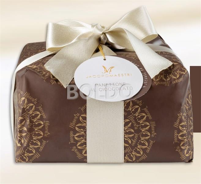 L'impasto base del Panettone al Cioccolato è ottenuto tradizionalmente con acqua, farina, burro, uova o anche tuorli. Limpasto è lavorato più volte e poi fatto lievitare per molte ore, in seguito è cotto in forno per un lungo periodo e fatto raffreddare naturalmente. Solo a questo punto ha luogo la farcitura con crema di cioccolato. Si suggerisce di servirlo a fette tagliate verticalmente e di accompagnarlo con vino dolce, come lo spumante o il moscato, o con delle bevande calde come caffè e cioccolato. Per apprezzarne meglio i profumi e i sapori si consiglia, prima di portarlo in tavola, di lasciarlo riposare a temperatura ambiente per almeno 24 ore.