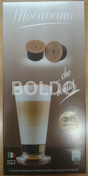 30 capsule monodose di preparato solubile per bevanda istantanea al gusto di mokaccino.