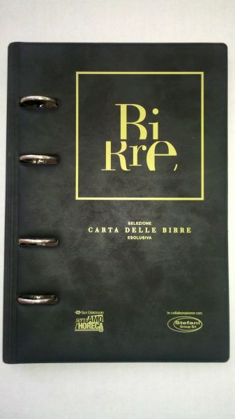 Il vostro listino personalizzato delle birre in bottiglia distribuite da Boldo srl. Una scheda per ciascuna delle birre da voi scelte che descrive il prodotto, le caratteristiche e i principali abbinamenti gastronomici. Il tutto inserito in un'elegante raccoglitore con intestazione interna col vostro nome. Per info 0445/962038.