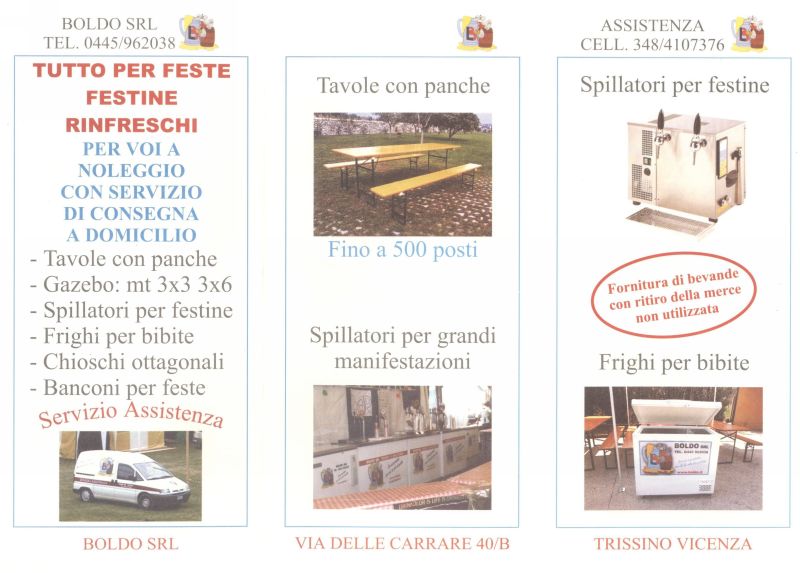La Boldo srl mette a vostra disposizione i suoi prodotti, le sue attrezzature e tutta la sua esperienza nell'organizzazione della festa perfetta.
