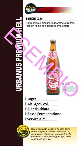 Il vostro listino personalizzato delle birre in bottiglia distribuite da Boldo srl. Una scheda per ciascuna delle birre da voi scelte che descrive il prodotto, le caratteristiche e i principali abbinamenti gastronomici. Il tutto inserito in un'elegante raccoglitore con intestazione interna col vostro nome. Per info 0445/962038.